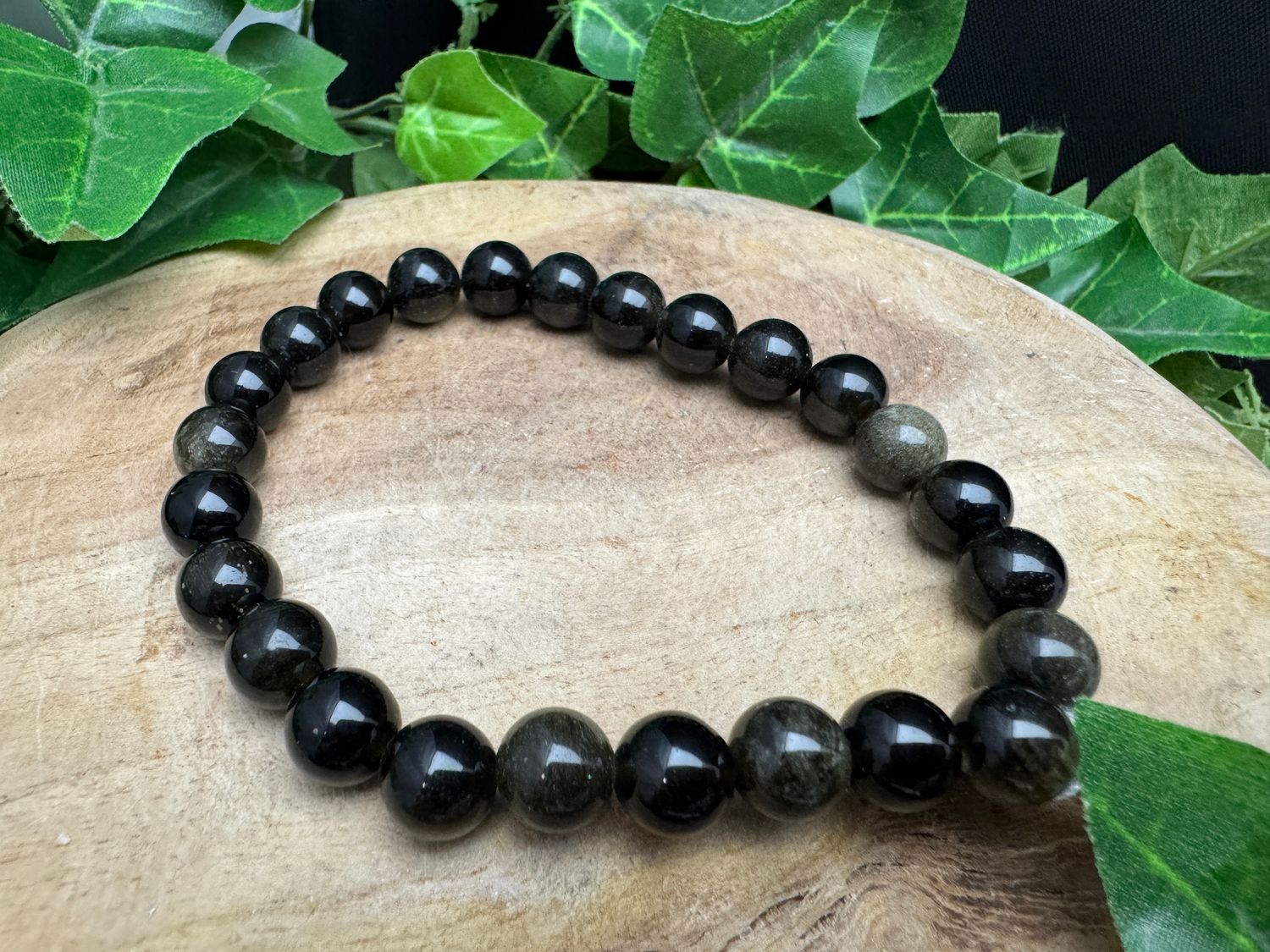 Mooie glanzende Goud Obsidiaan armband van 8 mm. Kies uw polsmaat.