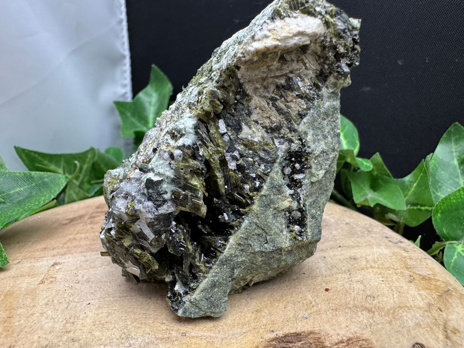 Brok met Epidoot (grote kristallen!!) en Albiet en iets Bysoliet (!). Vindplaats is Sollenkar, Krimmler, Oostenrijk. Stuk weegt 221 gram en is ongeveer 75 x 60 mm. (Oude verzameling met iets plakresten)