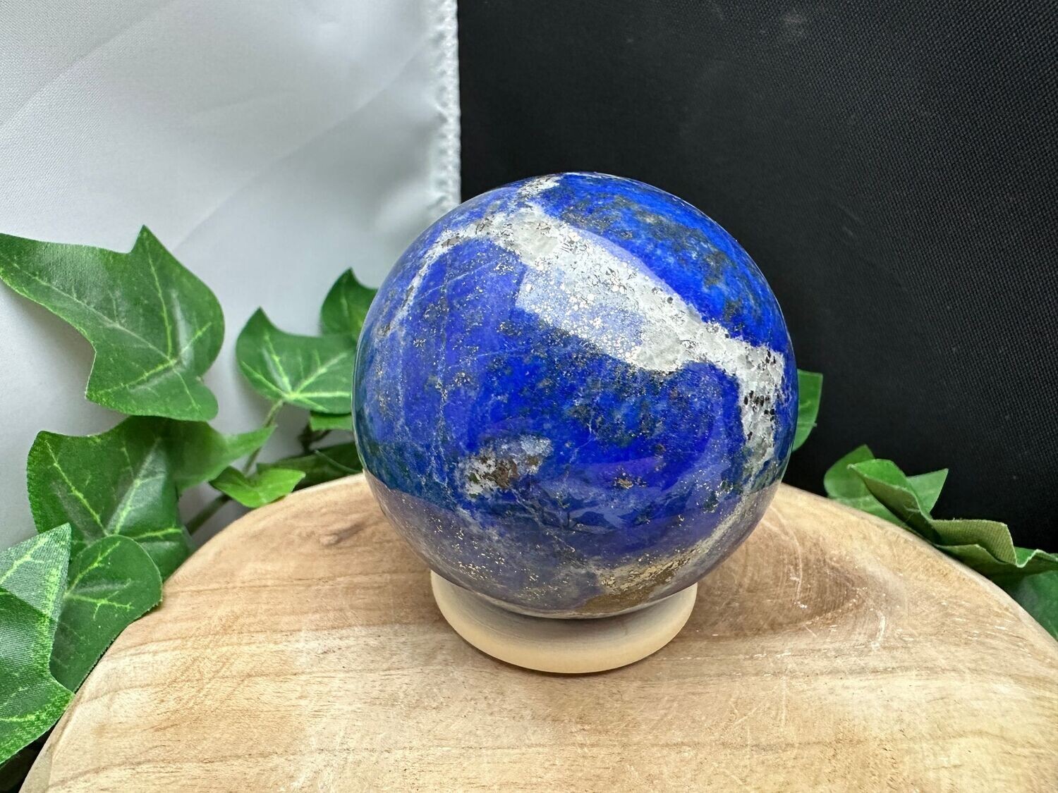 Prachtig glanzende Lapis Lazuli bol van 56 mm en een gewicht van 285 gram. Houders en standaards zijn apart te bestellen.