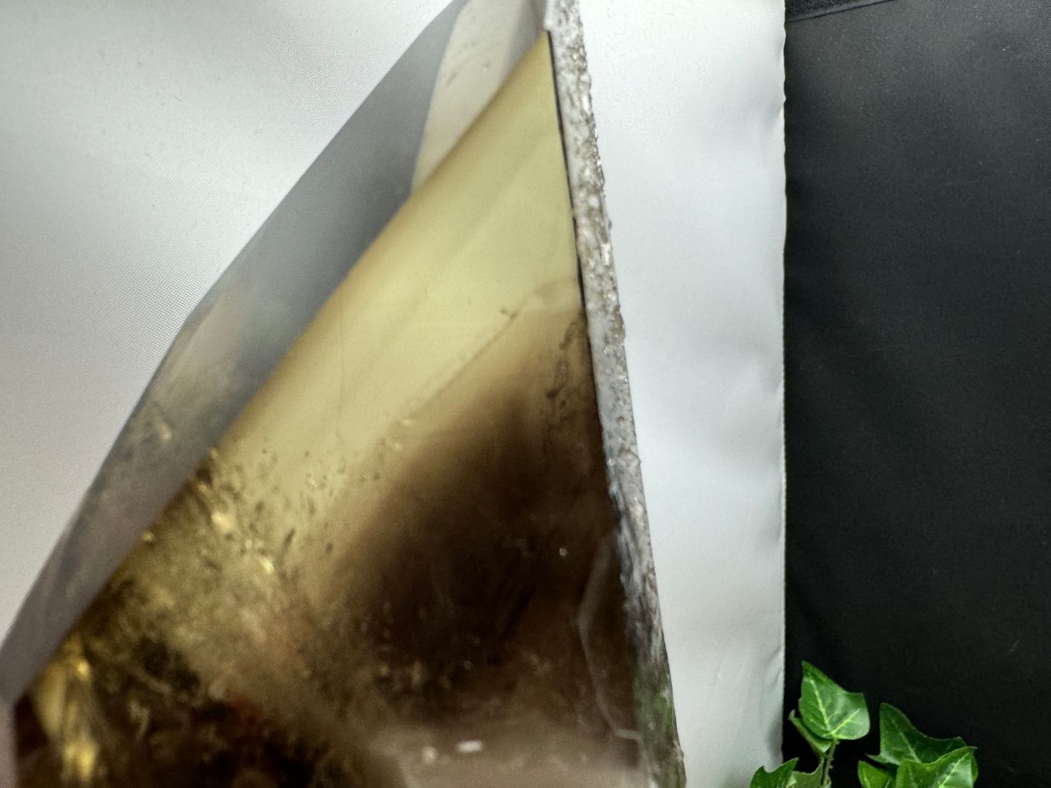 Prachtig Rookkwarts kristal met een fantoom uit Brazilië. Er is maar 1 zijde gepolijst, met klein chipje eraf. Deze weeg 262 gram en is ongeveer 93 x 56 x 33 mm.