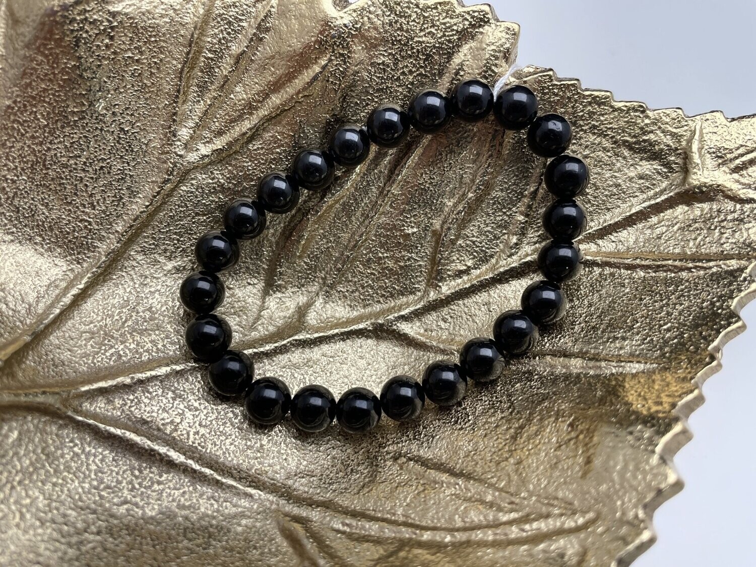 Prachtige armband met glanzende kralen van 8mm Zwarte Toermalijn. Niet uniek: u ontvangt een artikel gelijkend op de de foto. Polsmaat 17,5 - 18 cm.